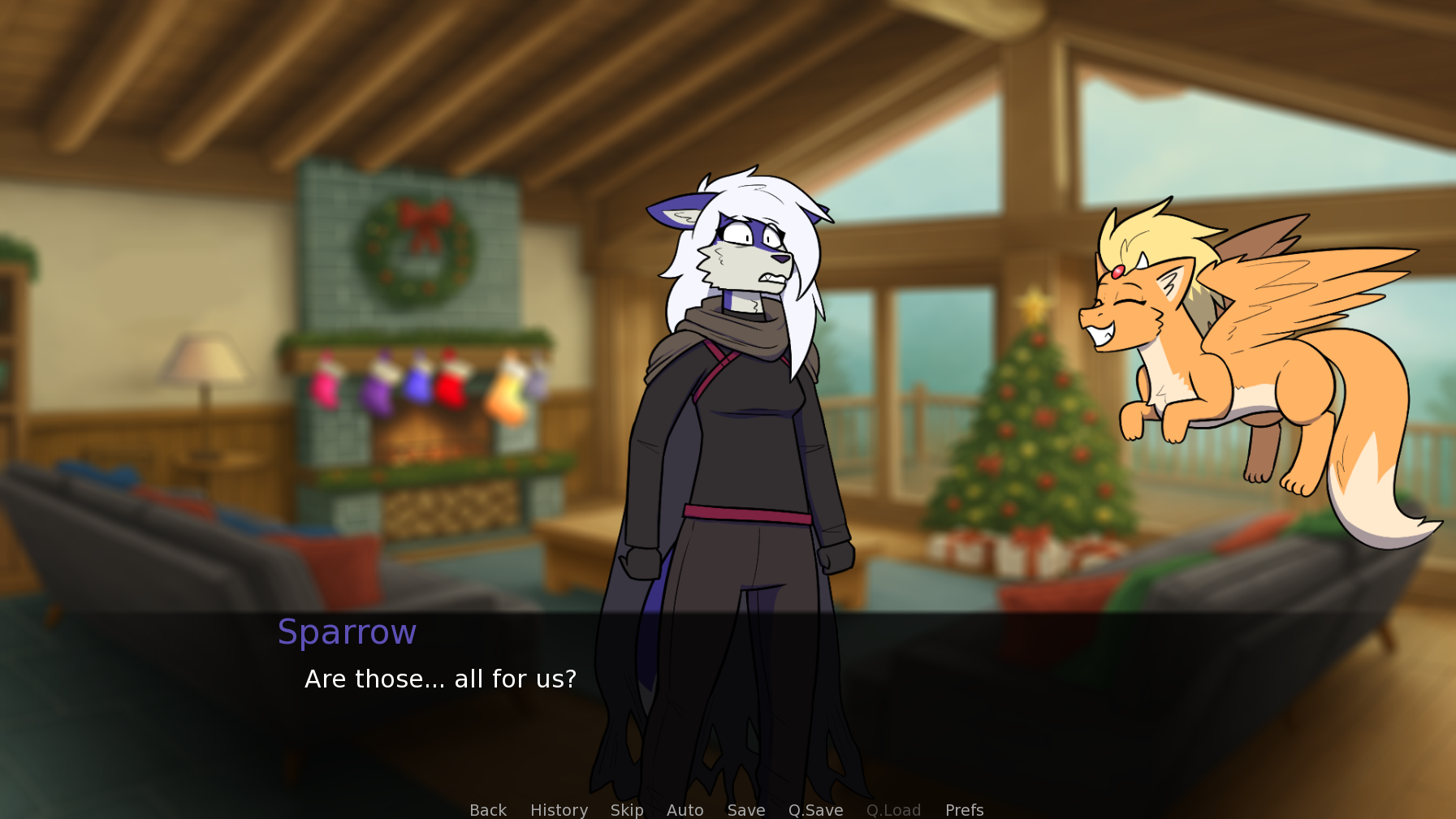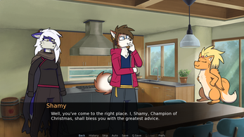Daren's been so caught up with his new life in the guild that he totally forgot about Christmas, and now he's scrambling to pick out the perfect gift for his new friends. Play as Daren as you interact with your guildmates in randomized events. Your choices will determine what kinds of gifts you get, and also which of the five characters you vibe with the most! You can also choose the length of the game, from only a handful of events to all 24 unique scenarios. With five different endings and at least three choices per event, there is a lot of dialogue to unlock!
